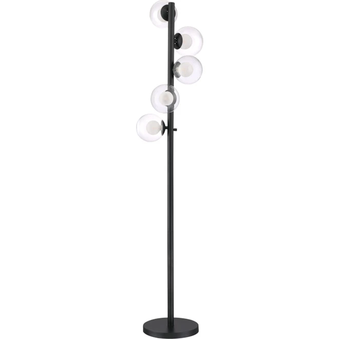 With its 5 beautiful clear glass globe shades surrounding the central pole, this Project Source floor lamp will not go unnoticed. Measuring 72.5 inches in height, it has a black finish that works well with many decors. This lamp requires 5 x 35 W G9 bulbs (sold separately).