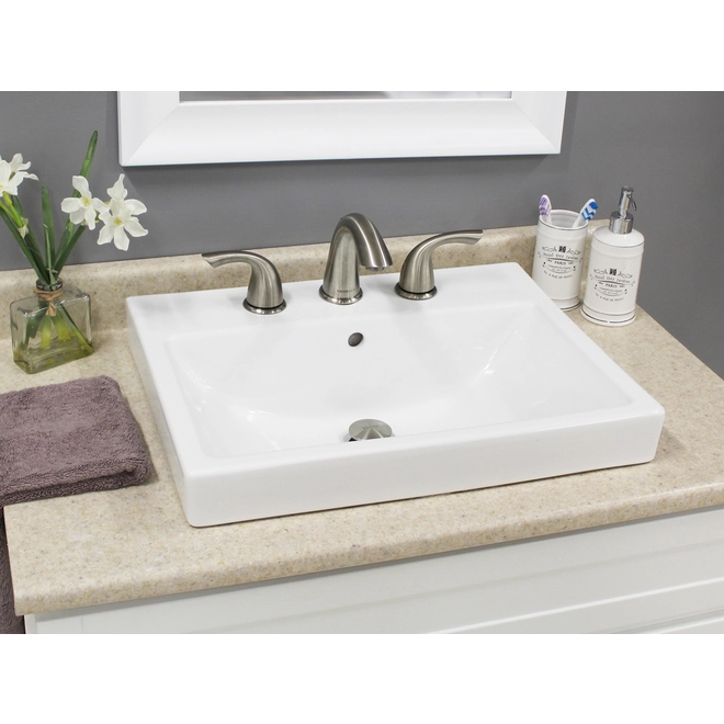 Project Source brings a modern flavor to your bathroom renovations with the Lanvin drop-in sink. Like more traditional styled sinks, it is crafted from premium porcelain for durability and ease of maintenance. Three pre-drilled holes allow for quick installation. Faucet sold separately.