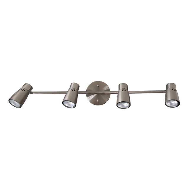 This 4-lights track light is ideal to create an ambience or for working. It works well in family rooms, the kitchen or the entrance. It requires 4 GU10 bulbs that are sold separately. The product is backed by a 1-year warranty.